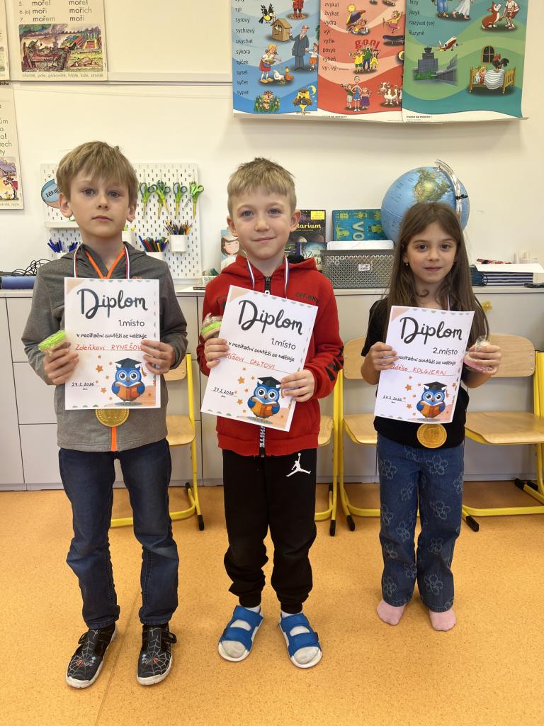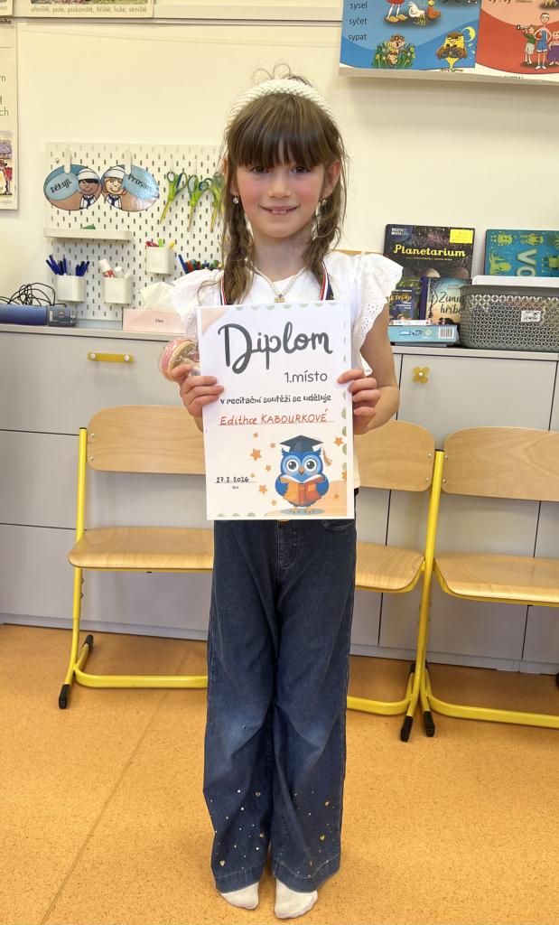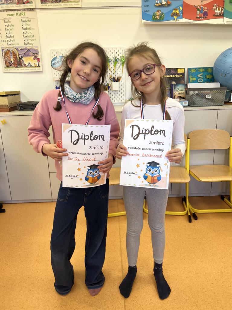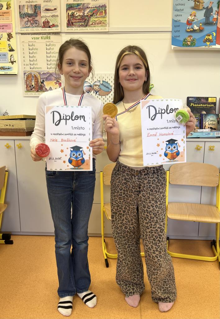 Žáci všech tříd, kteří postoupili z třídních kol, se utkali v recitaci svých básní v pátek 27.2.2026.