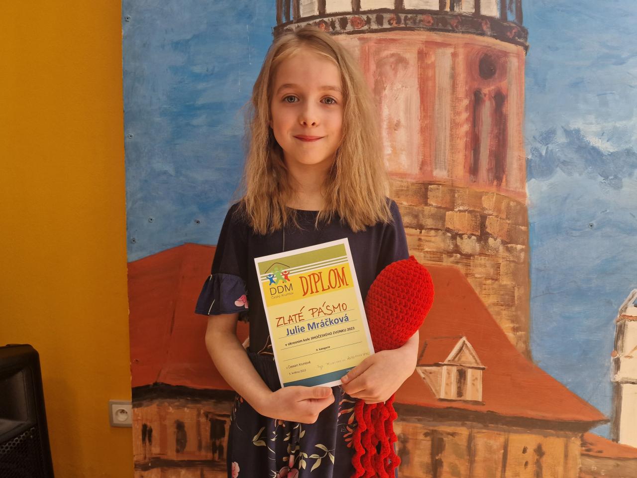 Gratulujeme Julince Mráčkové ze 2. ročníku ke skvělému 1. místu v pěvecké soutěži Zlatý zvonek, která se konala v Českém Krumlově v pátek 5.5.2023.