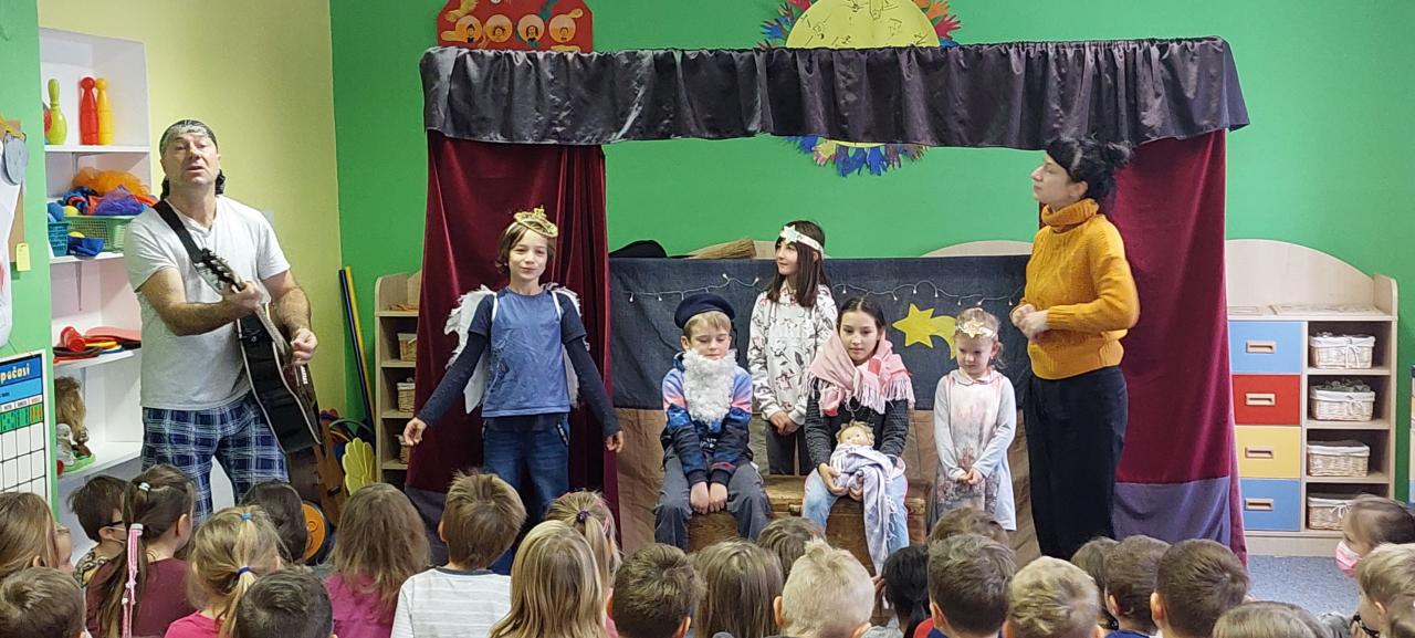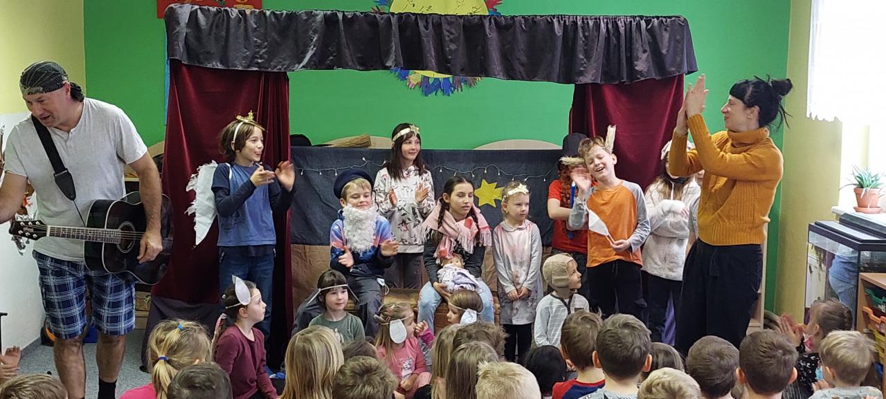 Vánoční atmosféru nám připravil divadelní soubor, se kterým si děti připomněly příběh Ježíška a zazpívaly si koledy.