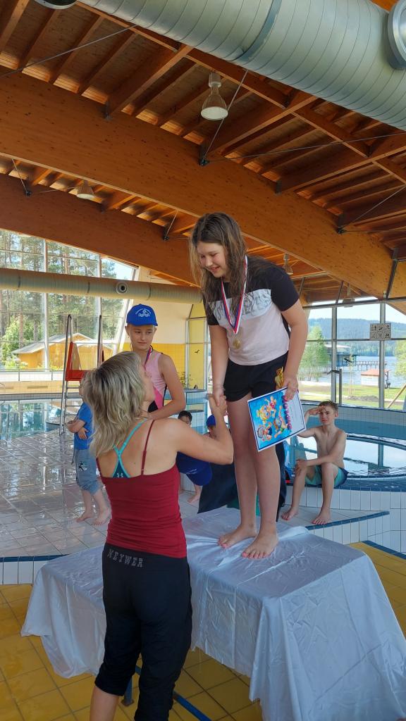 Děti z malotřídních škol na Českokrumlovsku závodily v plaveckém bazénu.